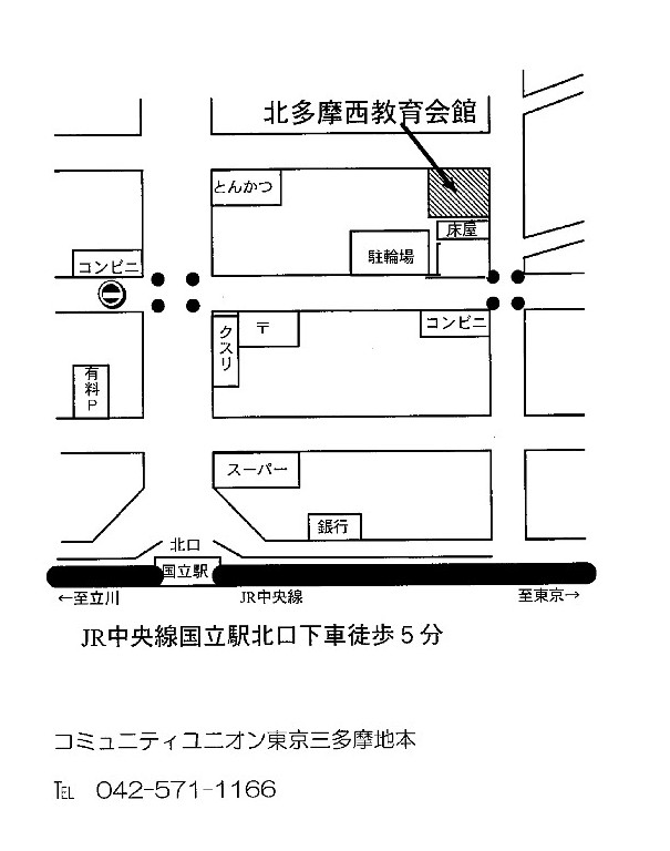 ユニオンの事務所 ⇒東京都国分寺市光町1-40-12 北多摩西教育会館1階